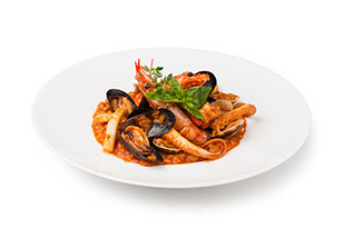 tomato and seafood sauce served over linguini